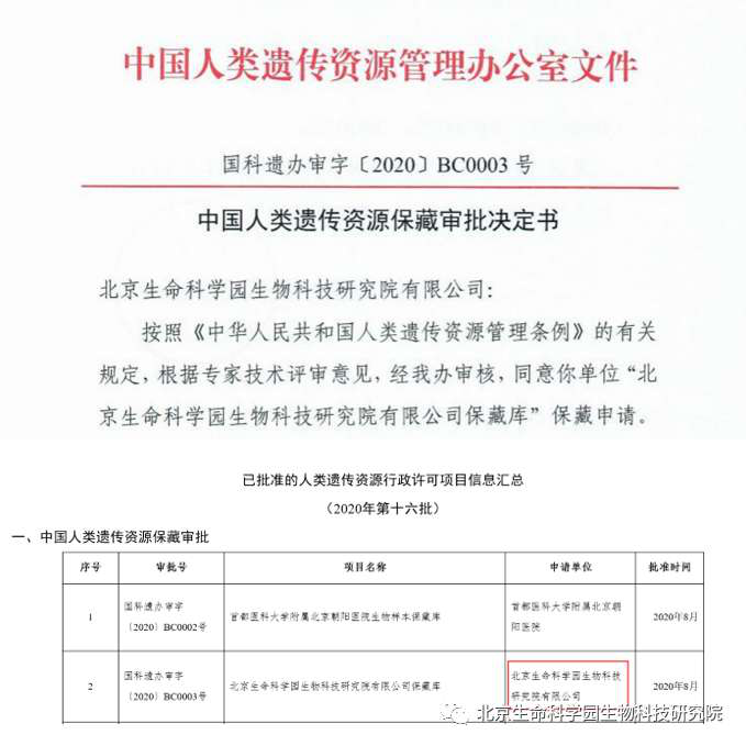 北京生命科學園生物科技研究院(以下簡稱“北京生物樣本資源庫”)(Biobank of Life Science Park,簡寫“BoLSP”)是一家由北京市科委和中關村生命科學園共同支持設立的第三方生物樣本庫公共服務平臺,秉承北京重大疾病臨床數據和樣本資源庫(以下簡稱“北京庫”)(Beijing Biobank of Clinical Resources,BBCR)十余年的發(fā)展成果,聚合眾多臨床樣本專家的專業(yè)共識,致力于在生命科學、生物醫(yī)藥研究領域發(fā)揮銜接樣本資源持有者與研究者的橋梁作用,解決生物樣本資源開發(fā)上下游信息不對稱、資源共享困難等問題。研究院在北京中關村生命科學園昌平園區(qū)建立了2000㎡生物樣本庫,最大存儲規(guī)模達1000萬份。研究院遵循CNAS-CL10:2020《生物樣本庫質量和能力認可準則》,同時結合北京庫過去十年的工作經驗與教訓,建立了一套完善的生物樣本保藏質量管理體系,從人、機、料、法、環(huán)、控多個角度,實現生物樣本保藏過程的全面質量控制,先后獲得國家科技部頒發(fā)的人類遺傳資源保藏行政許可證書和中國合格評定國家認可委員會(China National Accreditation Service for Conformity Assessment,CNAS)頒發(fā)的“CNAS認可證書”。